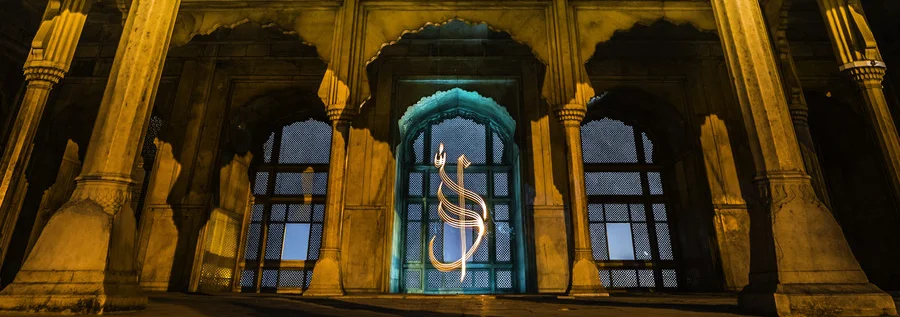 "The process requires a location visit, learn the history of the structure and extract a beautiful word to shoot and use as Light Calligraphy, then revisit the place, compose the map in which I make sure to leave enough space for the light calligraphy, the selection of color LEDs custom made according to the place and the environment, I adjust the setting of my camera in the long exposure and I start to write. I have to recompose 3 to 4 angles to obtain the best composition All my work is directly from the camera with minor color correction and rough conversion, I have built the lights myself to be suitable for light calligraphy, nothing in my work is "photoshopped" or retouched in any way. reverse to avoid flipping in Photoshop too, so far I have made luminous calligraphy in Arabic, English, Urdu, Farsi and Chinese, my intention is to produce Light calligraphy in so many languages. more as I can. "