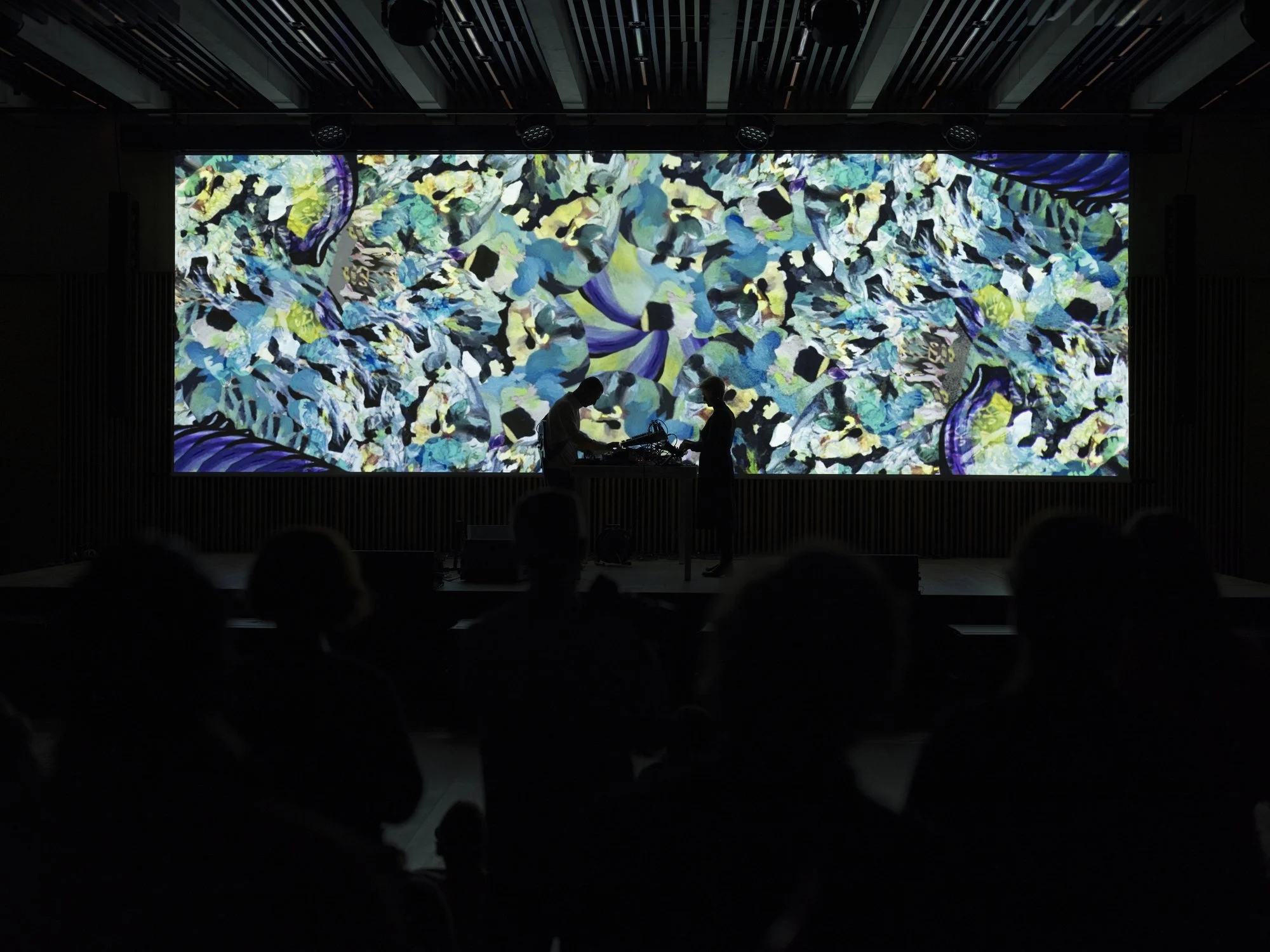 We were invited by Hans Peter Riegel to create a piece specifically for the Digital Arts Zürich festival. I believe he had a sharp intuition in pairing me with a musician like Angelo to develop an audiovisual work, which premiered as a live performance at Kunsthaus Zürich.