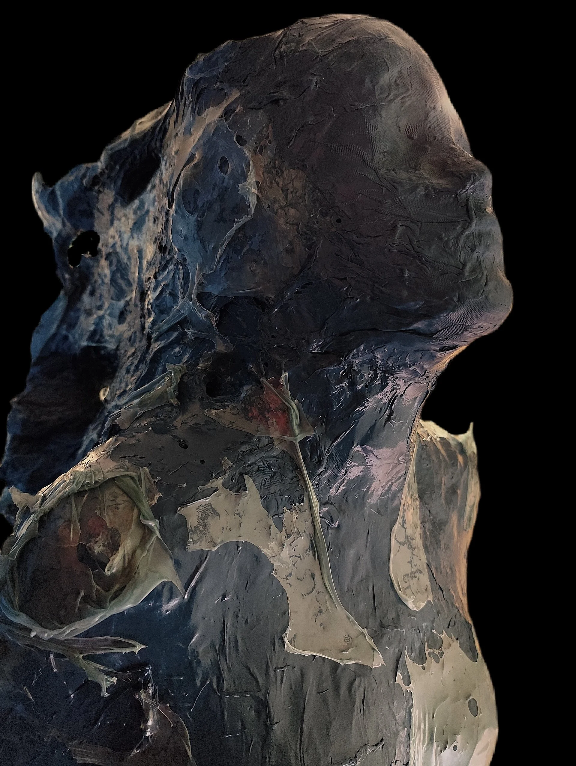 His process is intuitive and experimental. Rather than imposing predetermined forms, Biscontini collaborates with the material itself, allowing heat, gravity, and tension to contribute to the work's creation. The resulting forms often suggest organic structures, bodies, or landscapes, oscillating between abstraction and figuration.