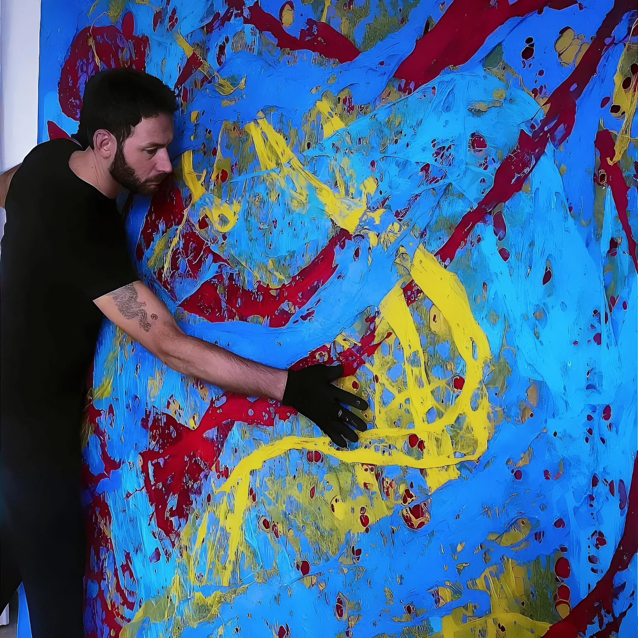 His research explores the relationship between matter, perception, and transformation, often through dynamic compositions, intense colour fields, and symbolic imagery, particularly the female body. His works have been presented in contemporary art exhibitions and events, contributing to the development of a personal language that combines technical experimentation with instinctive gesture.