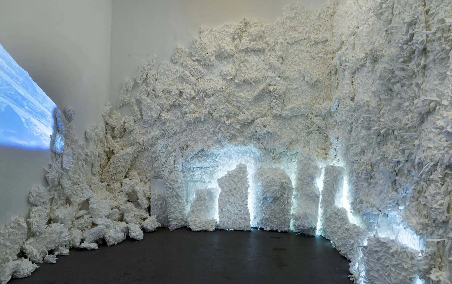 When I stood facing this fearful sight, surrounded by the astonished shrieks of those around me, I felt that the end of the world was near. The sight has haunted me for a long time. Around 2015, I started the Tears installation and video. First, I drew pictures of the glacier. After studying the meaning of the phenomenon, I understood how to represent it in the most challenging way: Styrofoam.