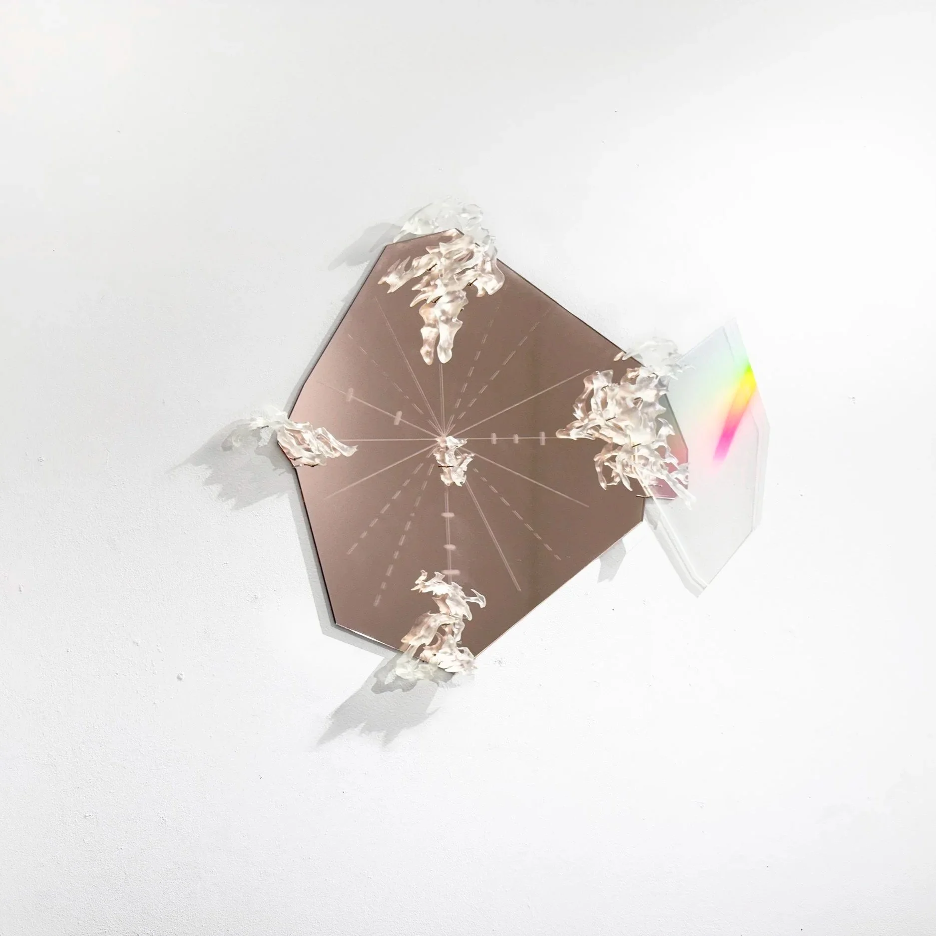 Data Acquisition, 3d printing resin and rose gold mirror, 19 x 25 in, 2025 © Yang Lu