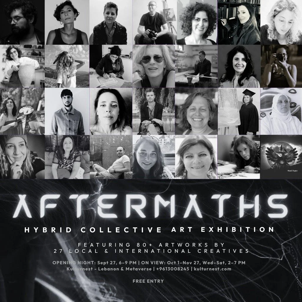 Since 2023, we have been exploring interconnected themes around memory, identity, human rights, resilience, and kaleidoscopic cultural expressions, to name just a few of the many themes we have been tackling - each exhibition, art market, cultural activity, publication, conference, etc., approaching these questions from a different angle. Aftermaths is our fifth collective exhibition, and our fourth hybrid one. Over the past months, Kulturnest has grown by continuing to balance its physical and digital presence, developing our concept store and eShop/eGallery, and sustaining international collaborations. We also took part in the Beirut Art Days this past summer, and collaborated with local initiatives such as Artists of Beirut and MinalShaab. These experiences reinforced our role as a meeting point for art, dialogue (intercultural, transnational, phygital), and community. For Aftermaths, we extended this spirit of collaboration to the London Arts-Based Research Centre, with whom we have worked before.