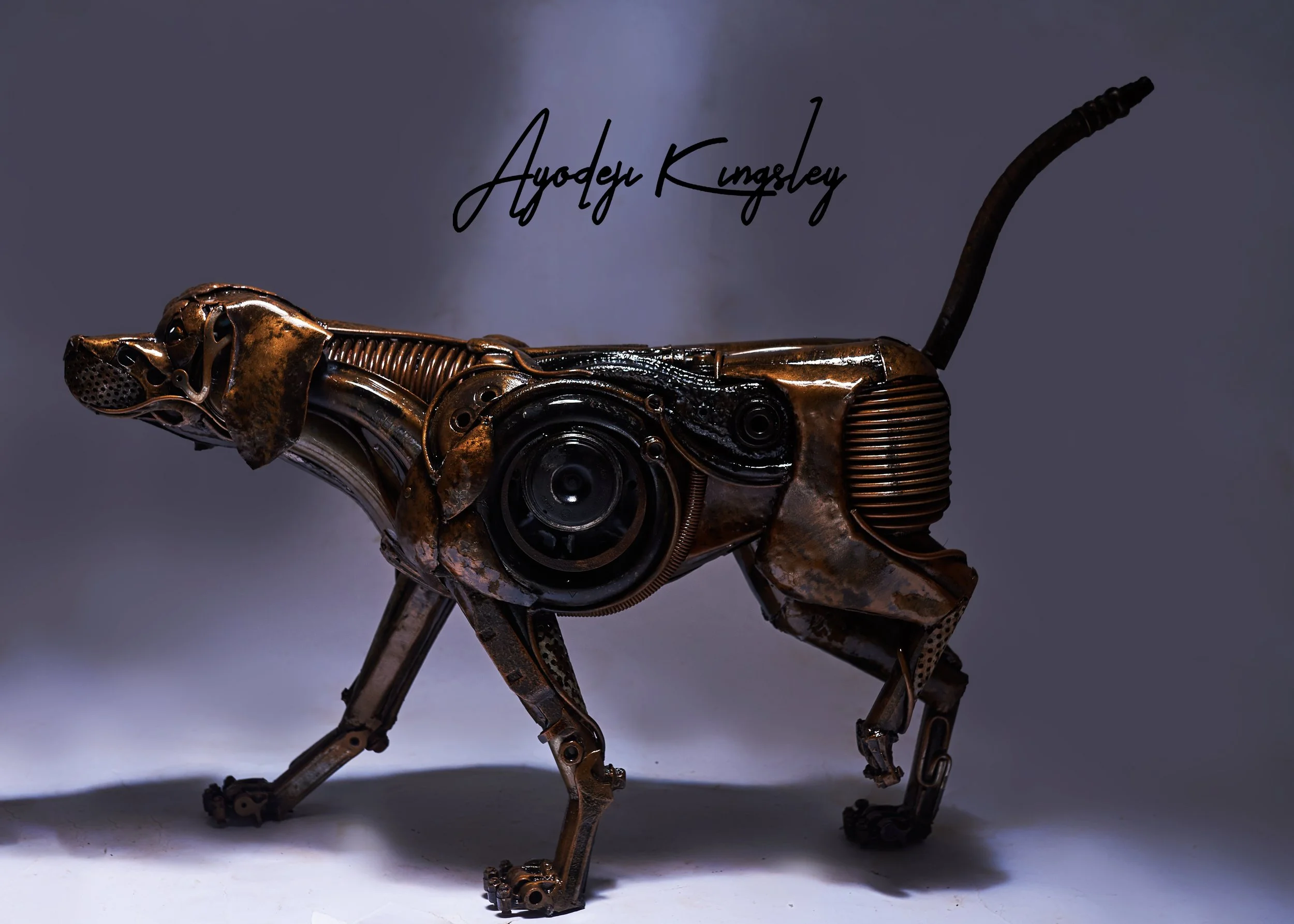As a passionate environmentalist/artist motivated by a deep fascination with salvaged metals' raw power and inherent beauty, Ayodeji has worked on a pre-existing art concept but with a different expression lens. He has thought through and taught the magnificent use of what others see as waste, bringing them together in the praxis of pleasing aesthetics to express familiar ideas and entities such as animals, tools, items and lots more. He transforms discarded machinery, tools, and industrial detritus into evocative sculptures that explore themes of decay, rebirth, and the cyclical nature of existence.