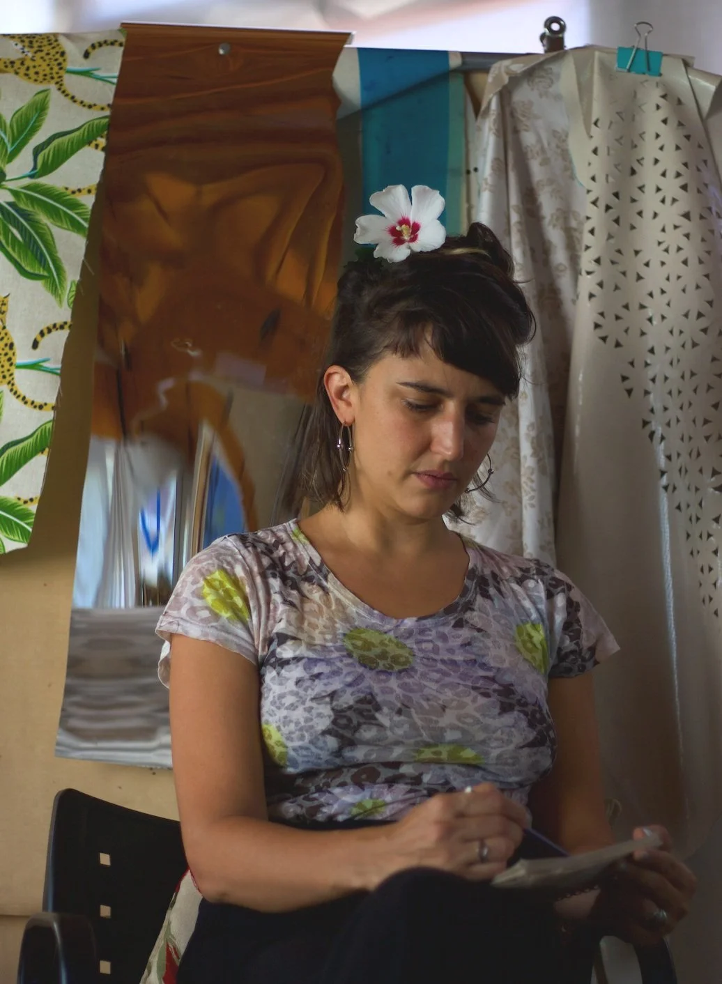 Irene Molnár (1986, Buenos Aires) is a visual artist and researcher. In 2003, she began her studies in performing arts, and in 2010, she trained in contemporary dance. She participated in independent theatre festivals, cycles and national and international filming. In 2008, she began painting as a self-taught artist, then she took part in workshops and in 2013, entered the Manuel Belgrano Higher School of Artistic Education (ESEA). She trained in Curation with María Lightowler (2021), conducted a work clinic with Tulio de Sagastizabal (2021), Diana Aisemberg (2022-23) and Leila Tschoop (2019). Received the Sívori Museum Artist Book Award (2022). In 2021, one of her works was selected for the OSDE Foundation Award and in 2017, she held a group exhibition at Espacio Modos, where one of her paintings was selected to be part of the Vittal Art Collection. In 2023, she obtained a Ruido Blanco Residency scholarship, Puerto Iguazú, where she carried out a pictorial project and another performative project and participated in a micro-residency at Wabi Sabi in Nordelta.