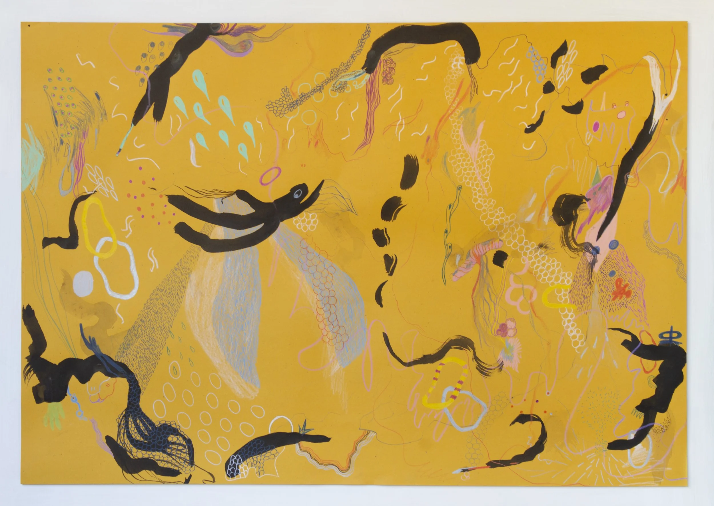 I'm currently developing paintings, drawings, collages, and three-dimensional pieces outside the frame. I'm particularly interested in combining them with lighting, projections, and textile techniques in space. I'm looking forward to travelling and doing an international residency where I'll have the time and space to do this. I'll also be able to strengthen myself through interaction with colleagues and mentors.