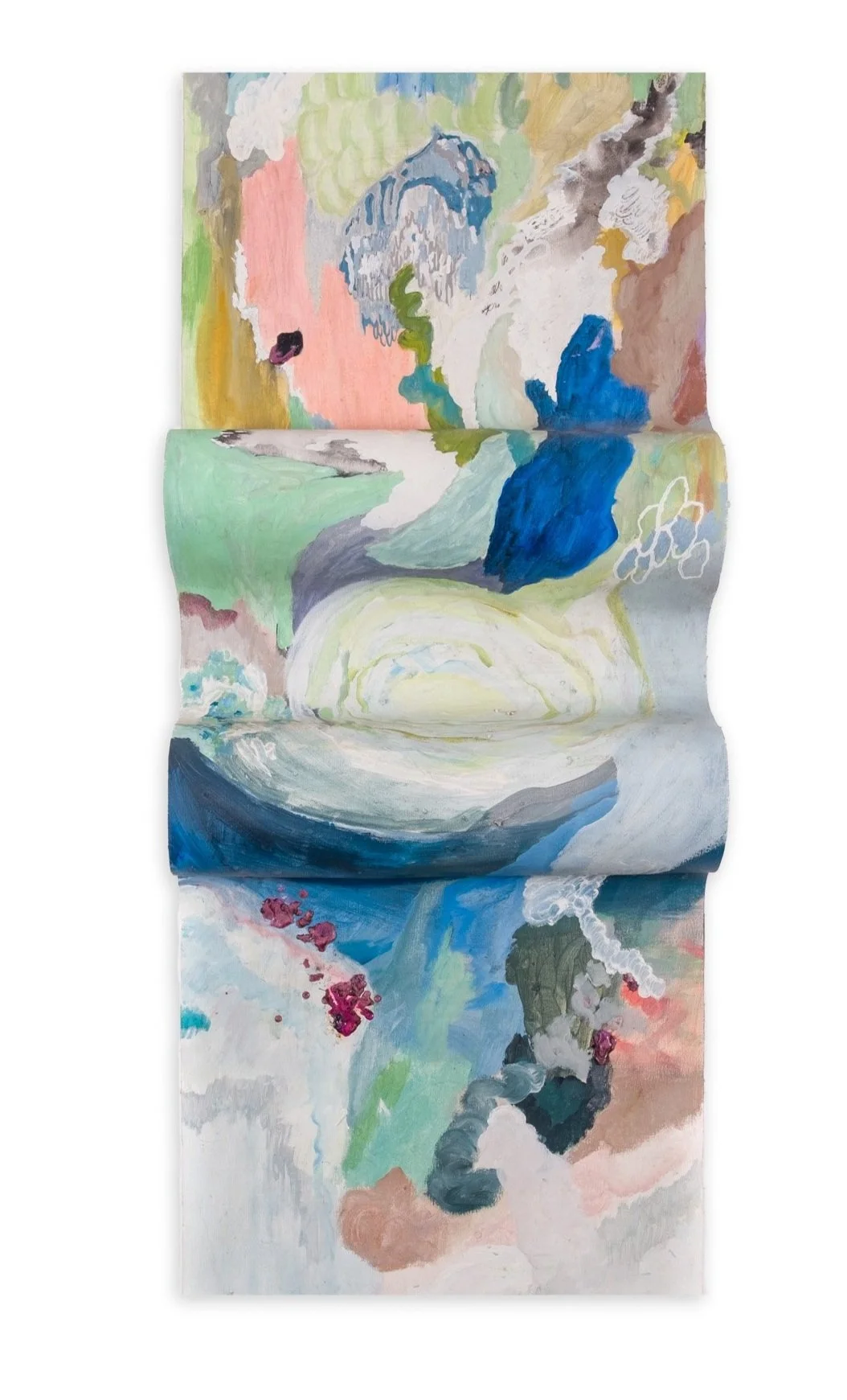 I draw, paint, make soft sculptures, intervening in space, objects, collages, installations, etc. I use conventional materials such as watercolours, acrylic and oil paint, markers, pencils, industrial materials, various fabrics, waste materials, or any other material that I have at my disposal. Subtle and loose brushstrokes coexist with different textures and consistencies of pigments and material exploration, superimposition of layers, and folds. I am interested in generating volumes by twisting the supports or modulating them, opening them and locating them in space. The images and reflections emerge as I transform the materials and supports. I usually work in series where the works share the same atmosphere.”