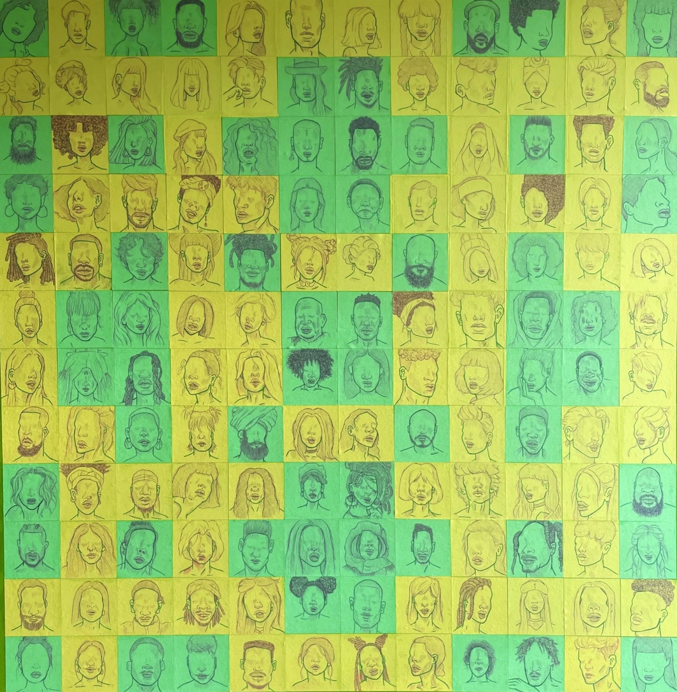 Personne, Post-it notes, 100x100 cm, 2022 © Lee Ellis