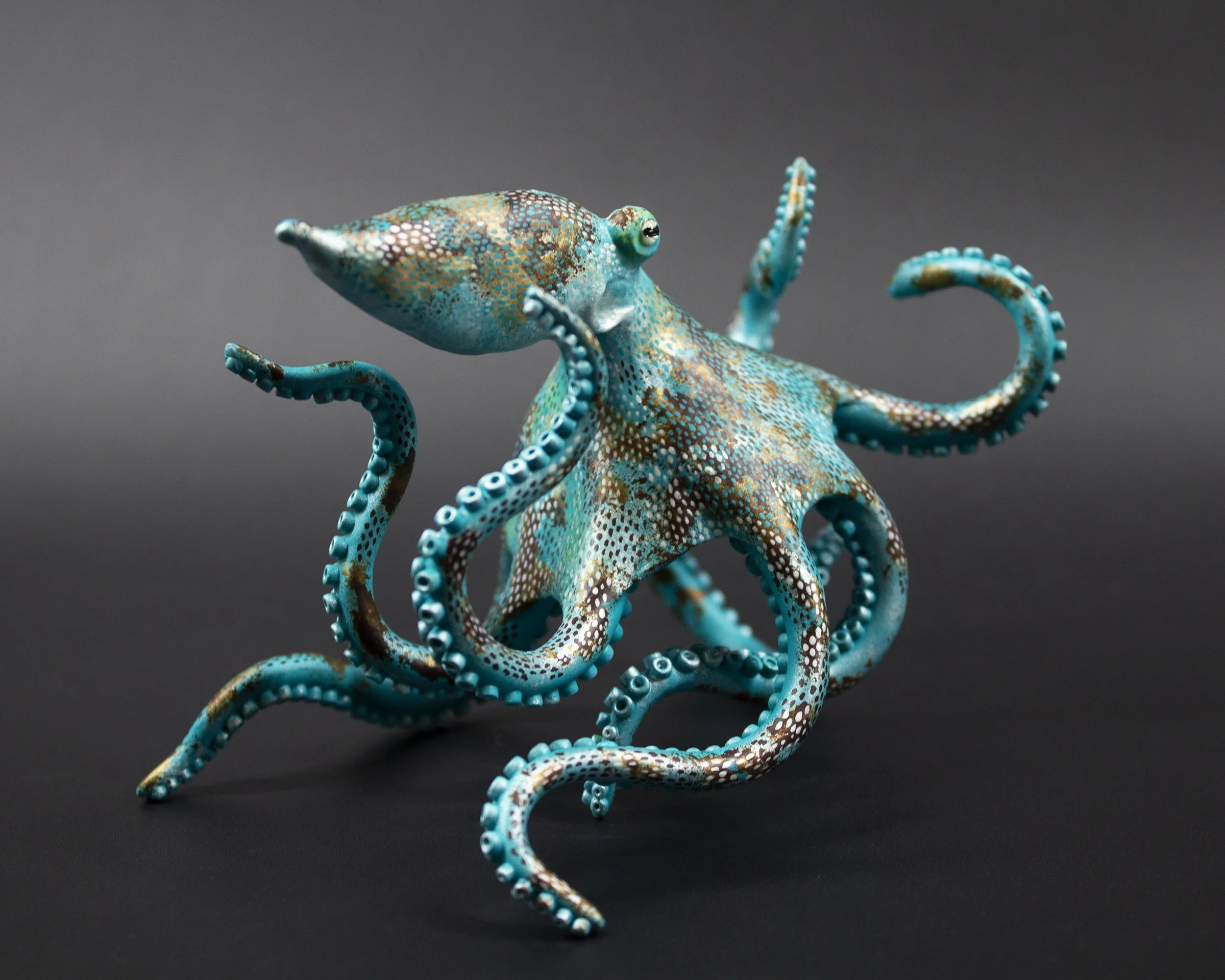 At the same time, my work is filtered through my own perspective. It is not purely scientific. Research is groundwork, but the final pieces balance biological accuracy with expressive qualities. This allows me to shape a story around the character of the octopus while creating sculptures that are visually engaging, emotionally resonant, and uniquely my own.