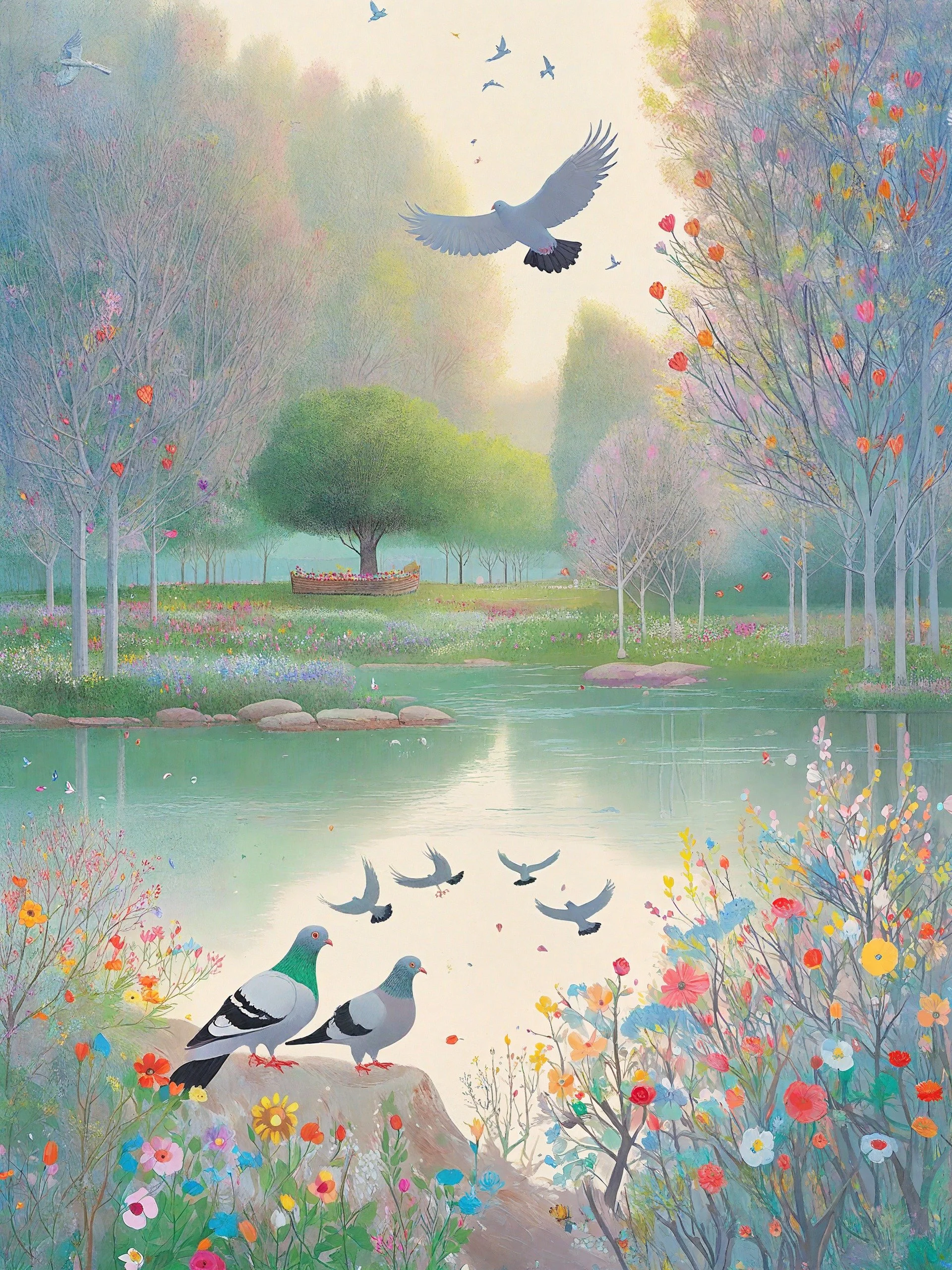 When peaceful and relaxed emotions arise, pigeons, water, beautiful skies and trees automatically come to mind. It can be a sudden flash of inspiration or an expression of emotion.