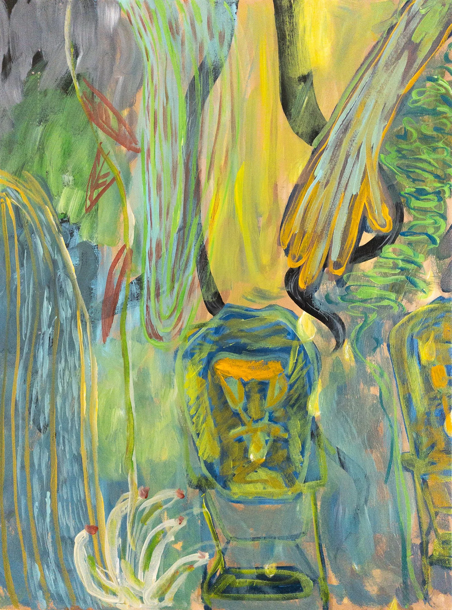 Strollers at the park, Acrylic and gouache on Canvas, 18x24 in, 2023.