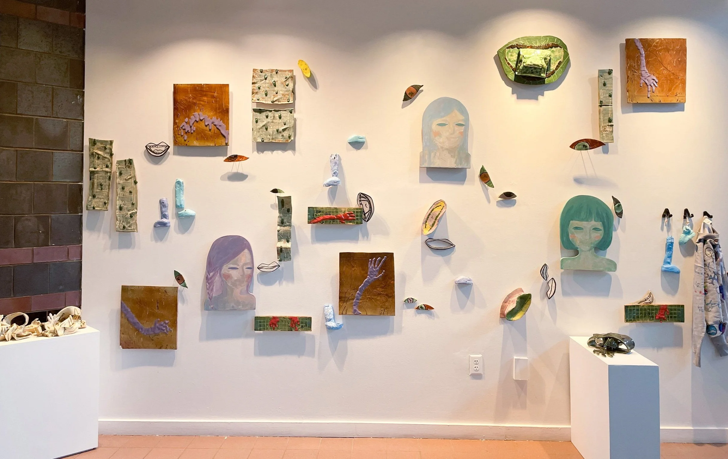 Chaotic Room, Mix medium (glazed ceramic, acrylic on panel, wax, sweatshirt), Dimension variable, 2023.