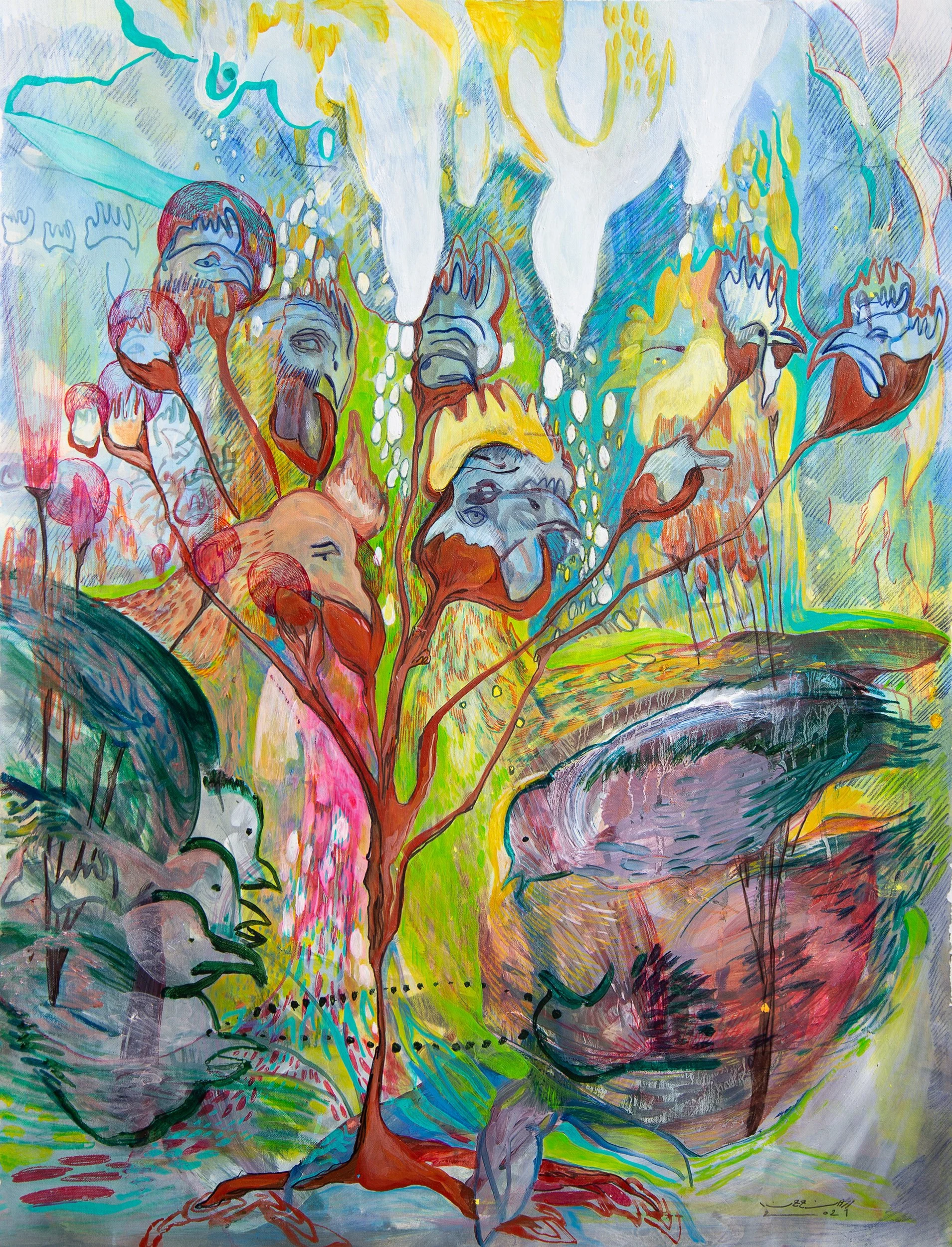 Planting And Harvesting, Mixed media on Canvas, 65x50 cm, 2021