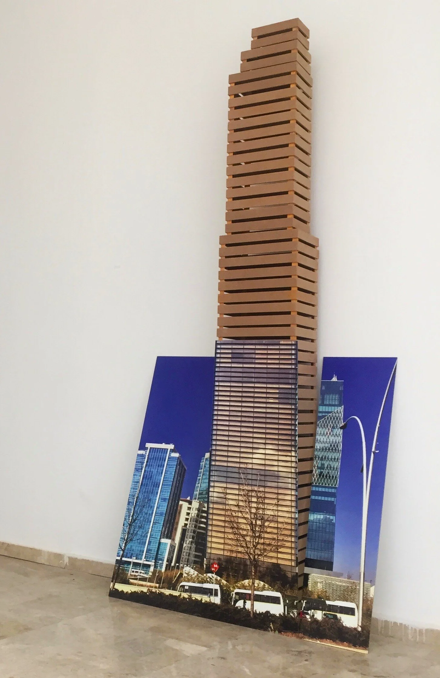 Crate Plaza , Installation, UV print on Alucobond 3 panels, 120 × 120 x 250 cm, 2021 - Safigül Kurtyiğit